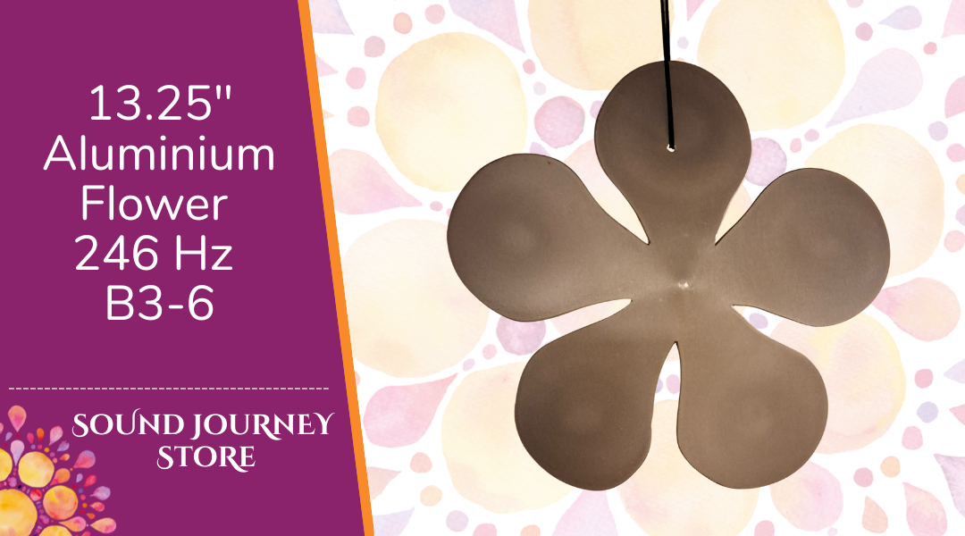 Made by Elemental Design in Maine, USA. These tuned flower shaped gongs have a pure tone.