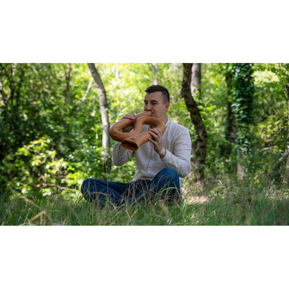 The Didgeridoo is mainly played while sitting or kneeling, with the end of the instrument resting on the floor. As a beginner, you will probably only get an unusual humming sound out of the Didgeridoo. However, the Didgeridoo can produce much more than that. Experienced players succeed in producing versatile sounds, rhythms and compositions with the Didgeridoo through the interplay of mouth and throat movements, voice effects as well as a special breathing technique.
