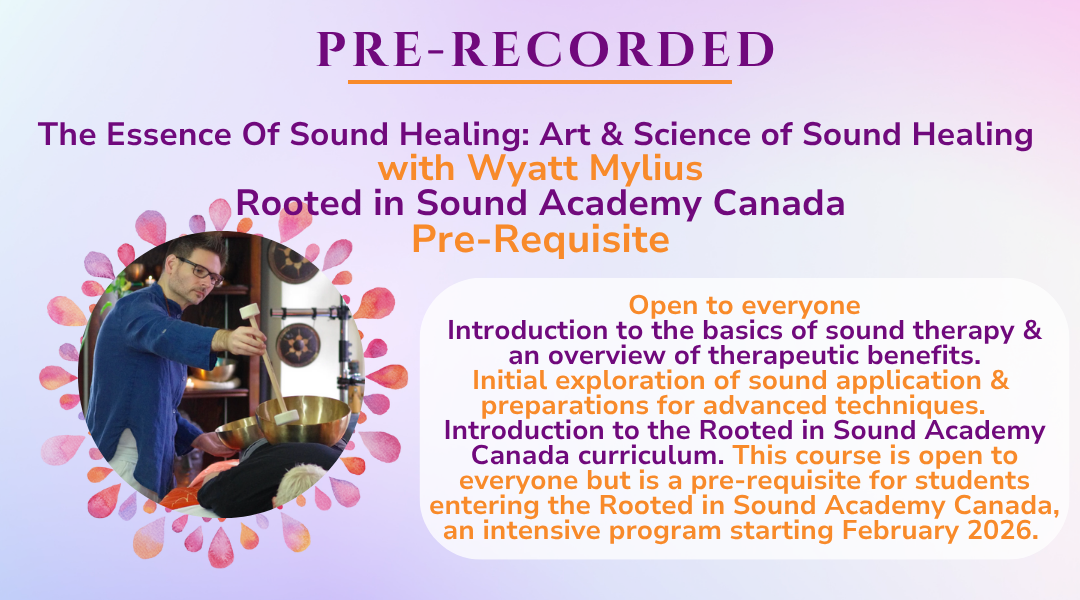 Join us for a 1 day training on The Essence of Sound Healing: Art, Science, and Tradition with Wyatt Mylius, Founder of Rooted in Sound Academy USA.
