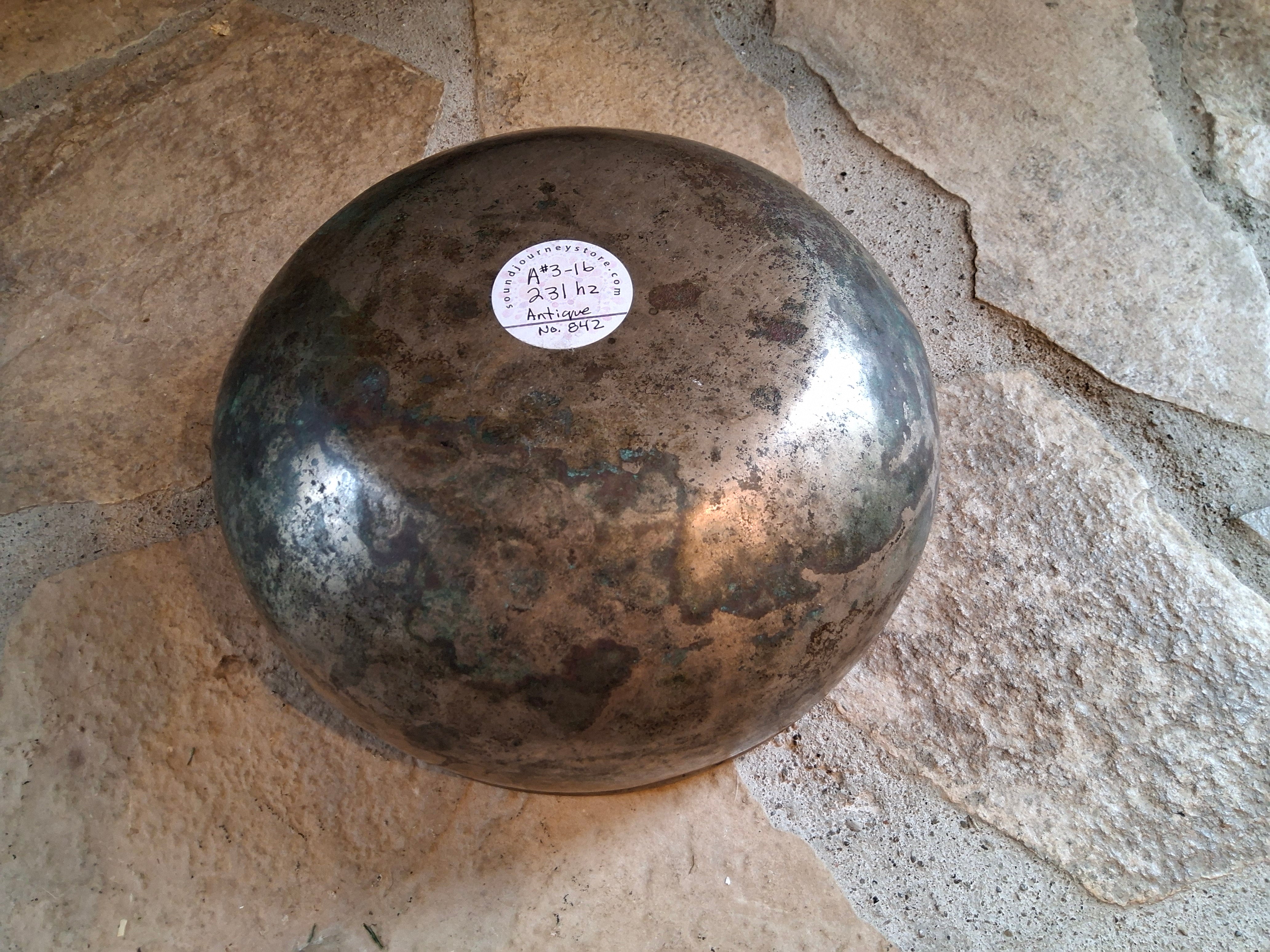 Bowl 842: 8.5" Antique Himalayan Singing Bowl 231 HZ A#3-16