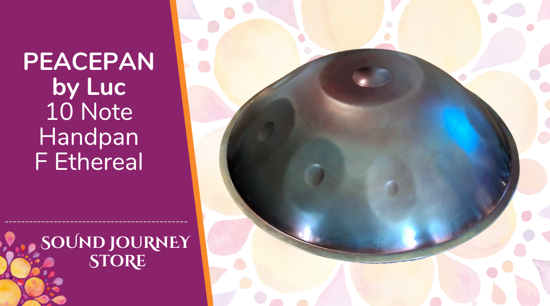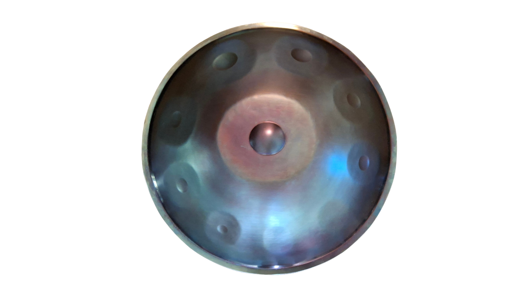 Discover the unique sound and craftsmanship of this hand-hammered stainless steel PeacePan, a specific brand of handpan, expertly crafted by Luc Dupuis, a renowned Canadian handpan maker. Each instrument is meticulously handmade in Canada, ensuring that no two are ever exactly alike, making your handpan truly one of a kind.