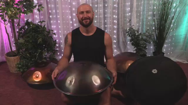 The 21" diameter of this particular handpan is a standard handpan size, making it compatible with many accessories, including stands and mics. It comes with a hard-shell carrying case. The 21" handpan is small enough to rest on the lap comfortably yet at the same time creates a deeper and more resonant sound than smaller instruments.