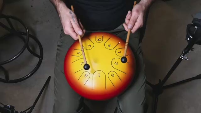 The notes are laid out on each of the drums so that you can create a most beautiful melody by starting at the bottom and alternating right and left hands as you go around the instrument. You can also play a beautiful tune by moving around the instrument in a circular manner.