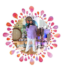 Mike Tamburo is a world-renowned musician, composer, artist and educator. He is known and loved for his transformational live concerts performed on his personally curated set of gongs, bells and other metal instruments. A lifelong multi-instrumentalist, Tamburo has focused his talents on metal percussion instruments, string instruments (hammered dulcimer, guitar, zither, shahi baaja), as well as electronic instruments (synths, looping). Since 1994, Tamburo has shared more than 2,000 concerts and workshops. He has recorded over 70 albums, both solo and in collaboration with Crown of Eternity, Meisha, Arco Flute Foundation, Psychic Frost, Brother Ong and more, ranging from epic gong music to ecstatic and transcendental string music, as well as folk, drone, space rock, ambient, mantra music and sometimes unclassifiable sounds. This man loves music in all its forms! He teaches gong music, both in person and online with School of Gong. He is also a part of the far-reaching ethnomusicology trio, Dig Deeper, with Mitch Nur and Thomas Orr Anderson. Their online classes have explored countless musical concepts with a focus on the cultural and personal uses of sound for healing, meditation, trance, ecstatic states, relaxation, self transformation, perception, psycho-acoustics, scientific discovery, time and community. An early adoptee of meditation, Tamburo’s music offers space for journeying, self-exploration and deep introspection. During many of his early performances, he experienced altered states of consciousness and out of body experiences. To understand these experiences, he explored kundalini yoga, energy work, the therapeutic use of sound and how sound impacts consciousness, human perception and self healing. His love for long sustained drones, overtones and psychoacoustics continues to inspire him to explore music in further directions. Tamburo is also an interdisciplinary sound artist, instrument builder, video artist, sound therapist, writer and meditation teacher.